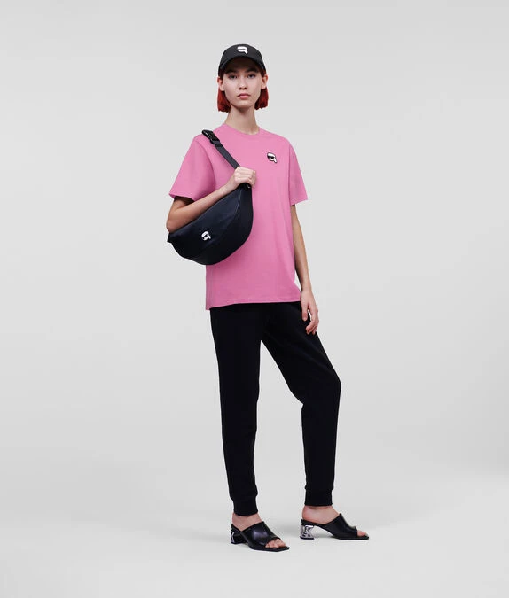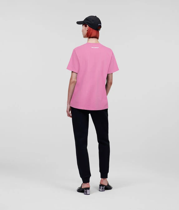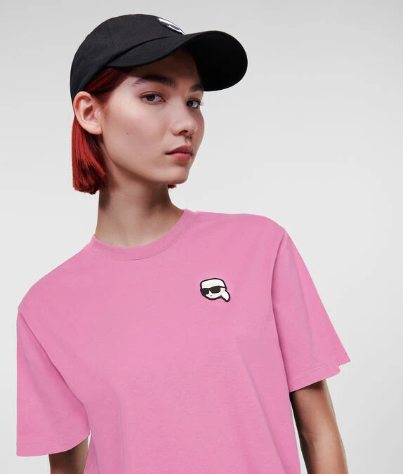 Ein raffiniertes Oversize-T-Shirt für bequemes Styling. Die lässige Silhouette aus atmungsaktiver Bio-Baumwolle wird mit einem kleinen Ikonik Karl-Silikon-Aufnäher der neuen Generation auf der Brust abgerundet.