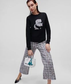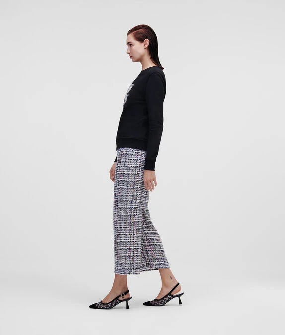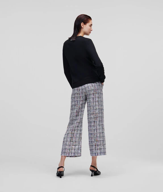 Veredeln Sie Ihre Freizeitlooks mit diesem strukturierten Sweatshirt mit der kultigen Silhouette von Karl Lagerfeld in mehrfarbigem Bouclé. Das lässig-coole Modell besteht aus Bio-Baumwolle mit Rippstrick-Einfassungen an Kragen, Bündchen und Saum.