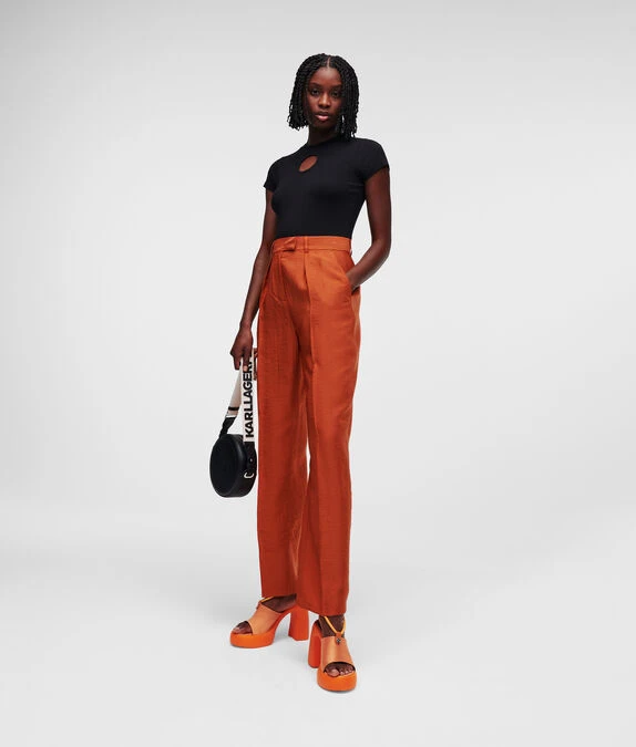 Für eine zeitgemäße Interpretation des klassischen dreiteiligen Anzugs kombinieren Sie diese Hose in Erdfarben mit passender Weste und Trenchcoat. Diese lebhafte Hose aus schillerndem italienischem Krepp sorgt für elegante, fließende Bewegungen und hohen Tragekomfort.