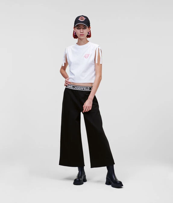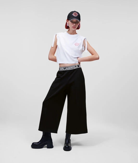 Diese Culotte mit weitem Bein und auffallendem KARL-Logo-Bund ist ein lässig-cooles Highlight. Diese lässige Culotte aus hochwertigem Doppeljersey in leicht verkürzter Silhouette harmoniert perfekt mit dem passenden Kapuzenpullover mit KARL-Logo.