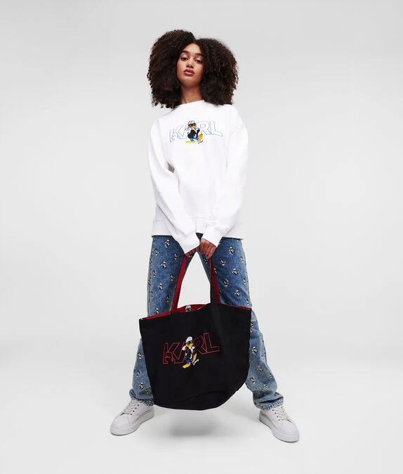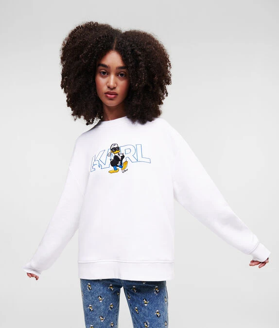 Dieses klassische Sweatshirt zeigt ein verspieltes Donald-Duck-Motiv innerhalb des kultigen KARL-Logos als Hommage an die exklusive DISNEY X KARL LAGERFELD-Kooperation.