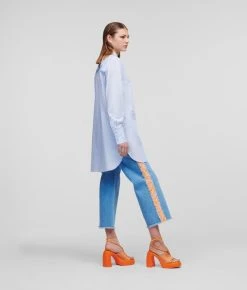 Ein zeitloser Klassiker mit KARL-Appeal. Dieses mühelos vielseitige Streifenhemd in einer langen Tunika-Silhouette bietet verschiedene Styling-Optionen. Das gestickte KARL-Kreis-Logo und die KL-Monogramm-Motive sorgen für ein auffälliges Finish.