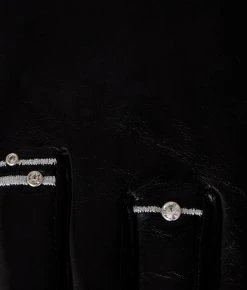 Diese ebenso verspielten wie raffinierten Vollfinger-Lederhandschuhe sind mit glitzernden, aufgestickten Ringen und funkelnden Nieten verziert. Tragen Sie in dieser Party-Saison Ihre Handschuhe als krönendes Finish zu Abend-Ensembles.