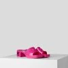 Ein ausgefallener Keil mit KL-Monogramm-Logo verleiht einer eleganten Riemchensandale eine transparente Note.
