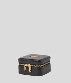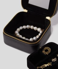Eine zauberhafte Schmuckschatulle zur sicheren Aufbewahrung wertvoller Gegenstände. Das stilvolle Modell verfügt über mehrere mit Samt gefütterte Innenfächer, darunter verdeckte Fächer hinter dem Spiegel und unter dem herausnehmbaren Ohrring- und Ringfach. Ein goldfarbener Reißverschluss und eine KARL-Autogramm-Verzierung runden diese luxuriöse Schmuckschatulle ab.