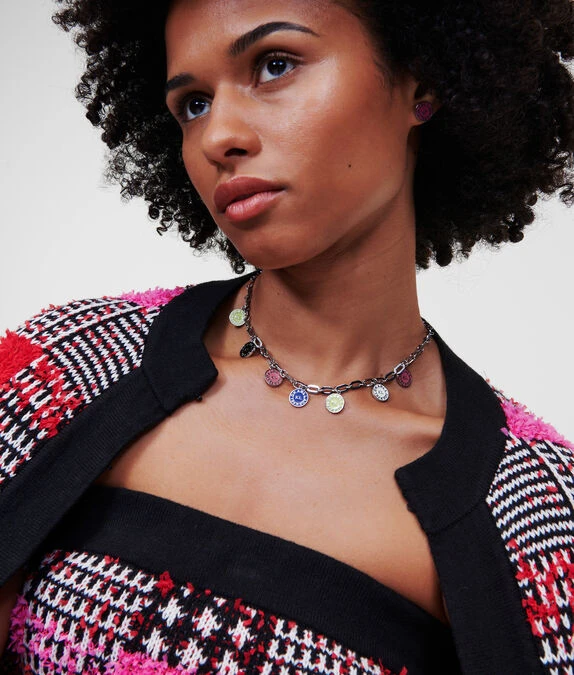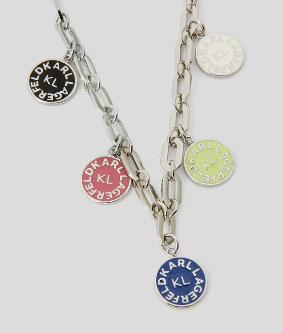 KARL LAGERFELD K/CIRCLE LOGO-HALSKETTE MIT MEHRFARBIGEN ANHÄNGERN