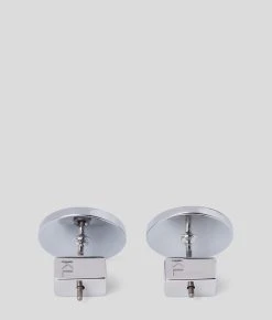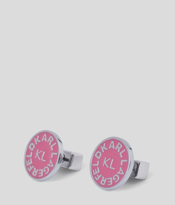 Diese auffälligen, verspielten Ohrstecker mit geprägtem, rundem Logo-Design wurden von einem Karl Lagerfeld-Archiv-Design inspiriert.