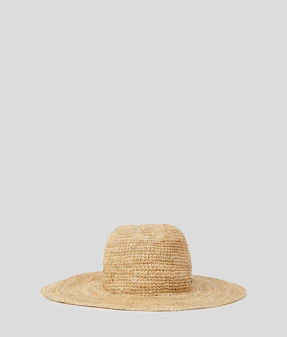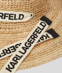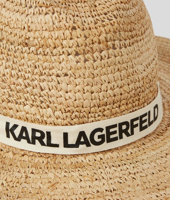 Dieser Bast-Sonnenhut mit breitem Sonnenschirm wird von einem Karl-Logo-Band geschmückt und verleiht Ihren Sommer-Looks einen Hauch von Pariser Chic.