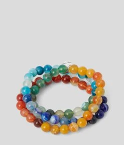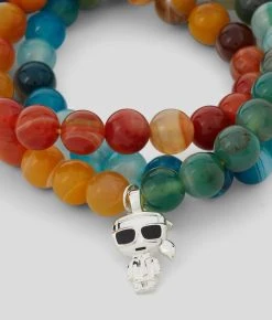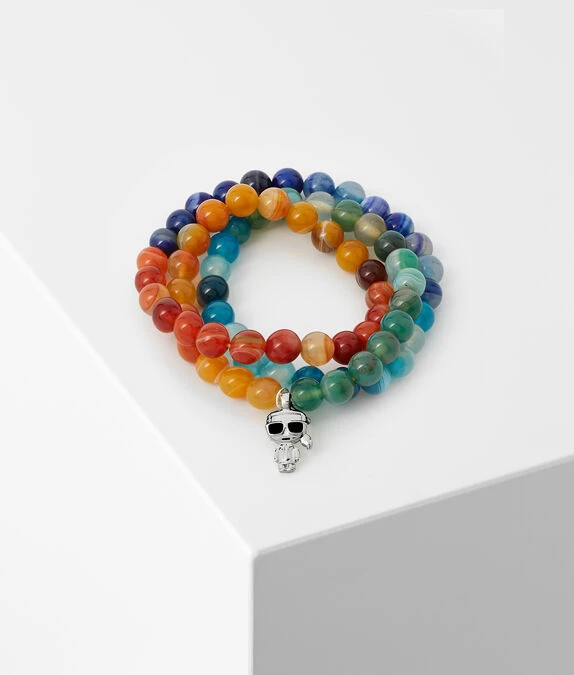 Für einen farbenfrohen Mehrfach-Schmuck-Look wird dieses Wickelarmband mit lebhaften Naturstein-Perlen und einem glänzenden, silberfarbenen Ikonik Karl-Anhänger verziert. Das lange Modell kann auch als Halskette getragen werden, um Abwechslung in Ihren Look zu bringen.