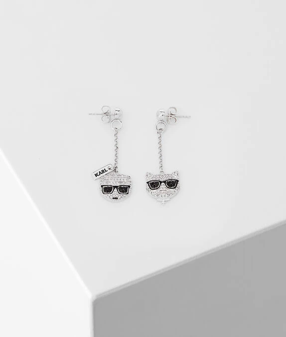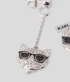 Diese Hängeohrringe mit Ikonik Karl und Choupette ganz in glitzerndem Strass verströmen verspielte Eleganz.