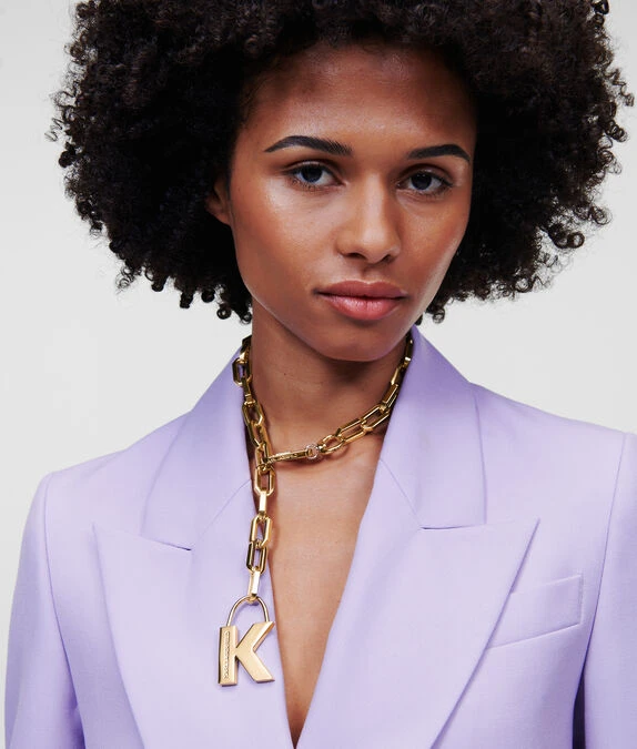 Ein KARL-Schmuckstück mit starkem Charakter: die neue Rock-Chic-Statement-Gliederkette. Ob Sweatshirts, T-Shirts, Party-Kleider – diese klobige Gliederkette ist ein selbstbewusstes Accessoire-Must-have.