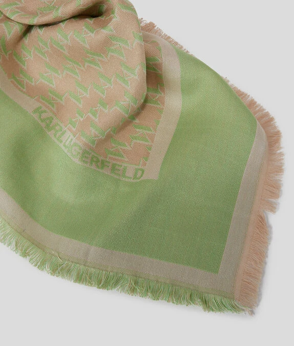 Ein unwiderstehlich weicher quadratischer Schal aus einem luxuriösen Seide-Baumwollgemisch und verziert mit einem durchgehenden KARL-Monogramm-Jacquard-Design.