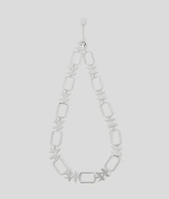 Verzaubern Sie Ihre Abendgarderobe mit dieser ausgefallenen Halskette mit geometrischen Kettengliedern, die mit dem faszinierenden KARL-Monogramm-Motiv durchsetzt sind.