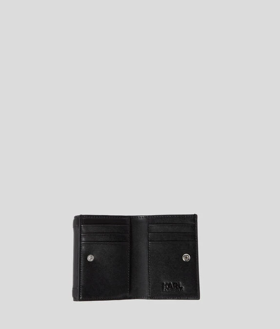 Die markanten KARL-Monogramm-Beschläge verleihen diesem alltäglichen Accessoire eine ganz besondere Note. Dieses elegante Bifold-Portemonnaie ist aus Glattleder gefertigt und verfügt über mehrere Kartenfächer und ein separates Münzfach.
