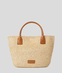 Diese handgefertigte Korbtasche mit großzügigem Interieur und sommerlichem gewebtem Design aus der luxuriösen KARL-Signatur-Kollektion ist ein Must-have für unbeschwerte Tage am Strand und darüber hinaus.