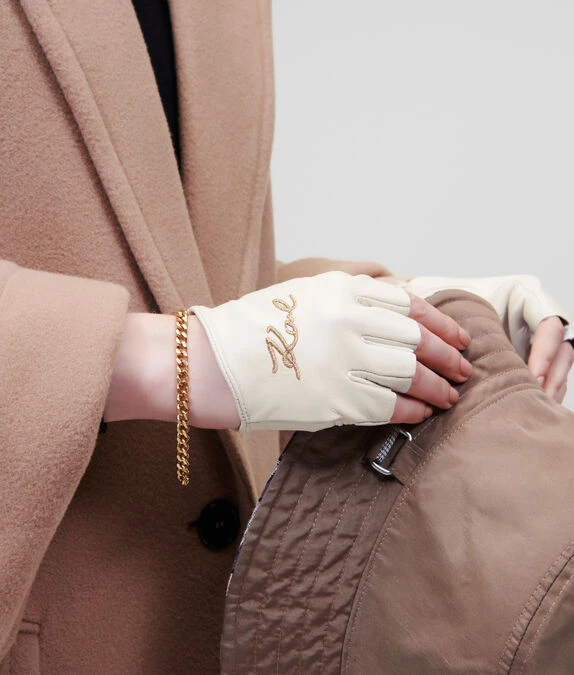 KARL LAGERFELD K/SIGNATURE FINGERLOSE HANDSCHUHE MIT KETTE