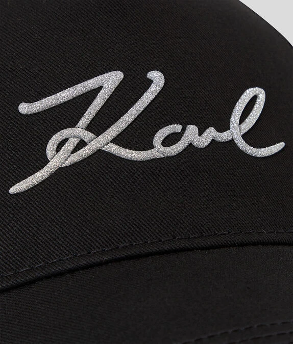 Diese Kappe aus Bio-Baumwolle mit glitzerndem KARL-Signatur-Logo verleiht jedem Look einen Hauch von Glanz.
