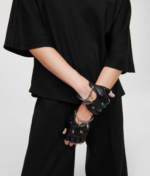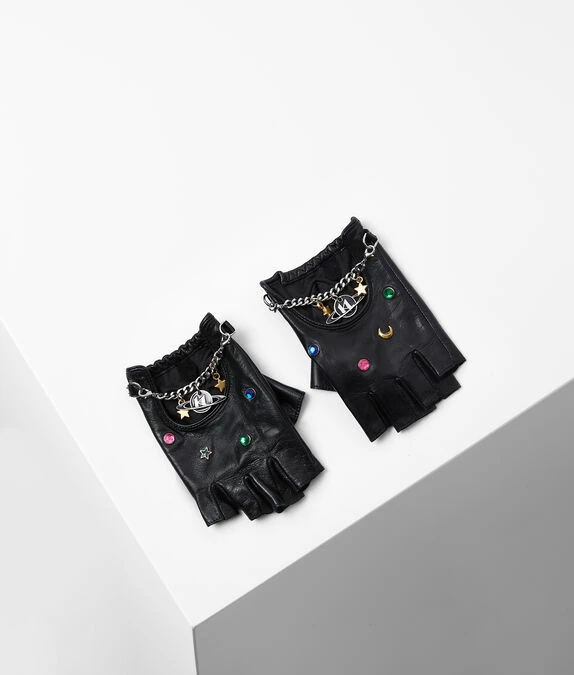 Vom Kosmos inspirierte Anhänger zieren diese fingerlosen Handschuhe. Ein Kettendetail mit einem von Planeten inspirierten KL-Monogramm-Anhänger verleiht dem verspielten Design eine unverkennbare KARL-Rock-Note.