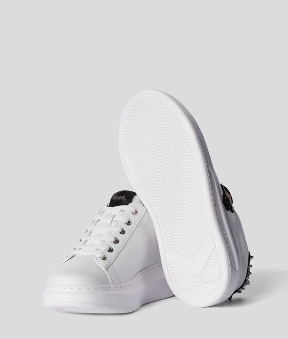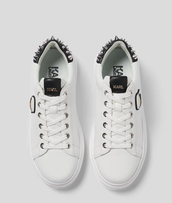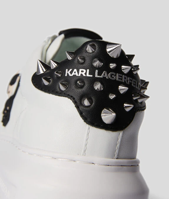 Eine Fersenkappe mit rockigen Nieten und die ikonische Karl Lagerfeld-Grafik machen diese minimalistischen Ledersneakers zu einem modischen Statement.