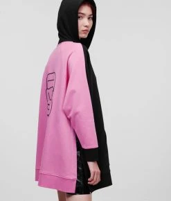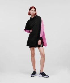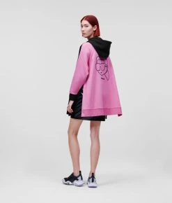 Verspielte Details prägen diesen Athleisure-Favoriten. Dieses Oversize-Hoodie aus einer zweifarbigen Konstruktion aus nachhaltigem gebürstetem Sweat-Material präsentiert eine neu interpretierte Ikonik Karl-Grafik auf der Rückseite.