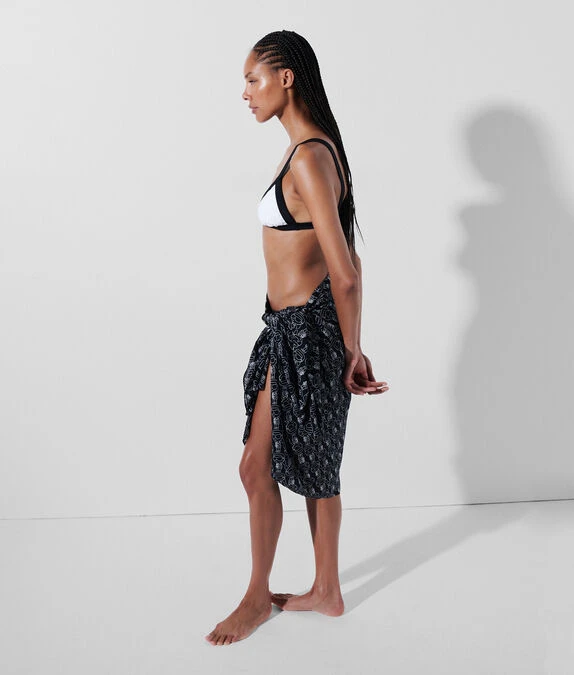 Eine Feriengarderobe ohne den vielseitigen Pareo ist einfach nicht komplett. Dieses verspielte Modell aus federleichter Viskose wird von einem durchgehenden Ikonik Karl-Design verziert.