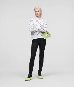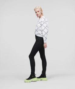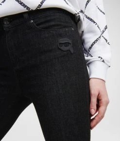 Veredeln Sie Ihre Denim-Kollektion mit dieser Skinny-Jeans mit neu interpretierter Ikonik Karl-Grafik. Diese Ganztags-Essentials aus schwarzem Stretch-Denim in figurbetonter Silhouette sind mit dunkel gebürsteten Zinnelementen, einem mit Monogramm verzierten Taschenfutter und einem dezenten Ikonik Karl-Aufnäher aus Kautschuk auf der linken Tasche ausgestattet.