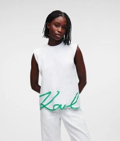 Von Workout bis Wochenende: Dieses Tanktop aus Bio-Baumwolle ist ein vielseitiges Athleisure-Basic. Die ärmellose Silhouette wird durch einen Saum in KARL-Signatur-Logo-Form vorne veredelt. Ein echtes Statement-Modell!