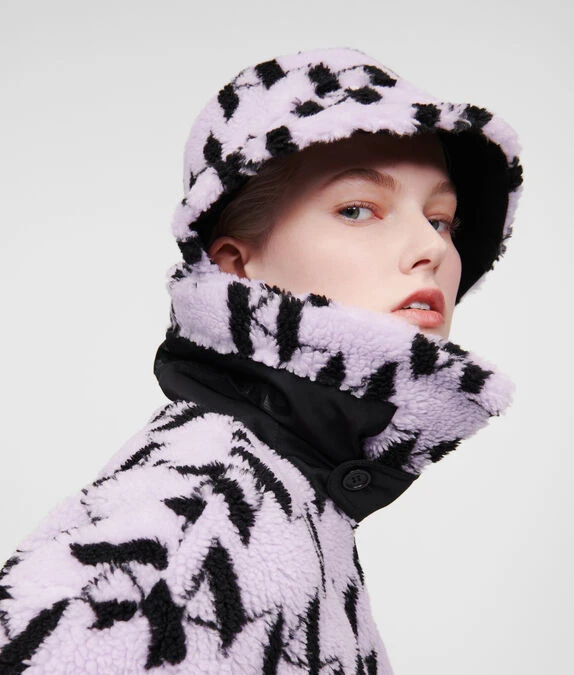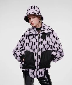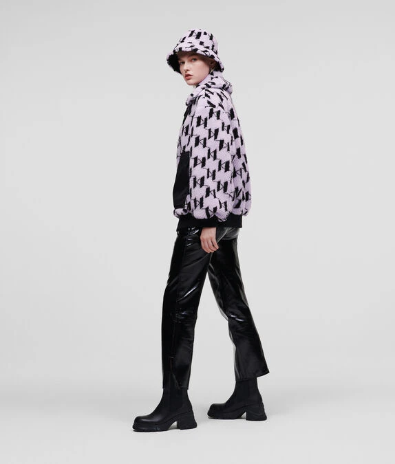 Eine flauschige Bomberjacke aus nachhaltig erzeugtem Kunstfell. Diese kuschelige Bomberjacke aus hochwertigen Recycling-Materialien mit leichter Oversize-Silhouette wird durch ein durchgehendes KARL-Monogramm-Design und kontrastierende Taschen, Bündchen und Rippstrick-Details am Saum veredelt.