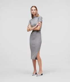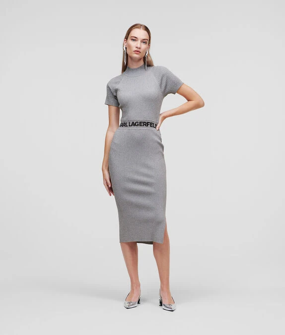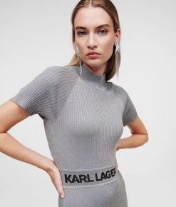 Dieses taillierte Kurzarm-Kleid aus schimmerndem Lurex bietet lässig-cooles Styling mit schillerndem Appeal. Die figurbetonte Silhouette besteht aus hochwertigen Recycling-Materialien und verfügt über ein auffälliges KARL-Branding an der Taille.