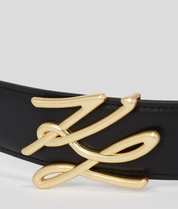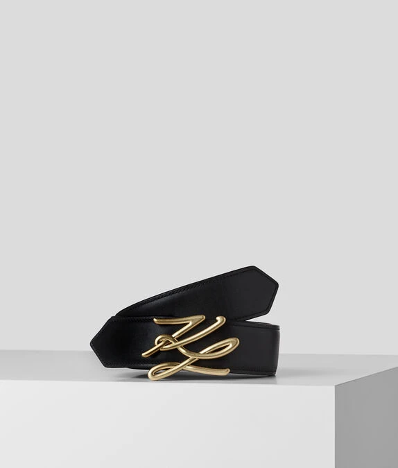 Dieser mittelbreite Gürtel aus Glattleder mit der markanten KARL-Autograph-Schnalle rundet Ihren Look für jede Gelegenheit ab.