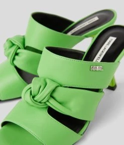 Mit dieser Sandale mit einem verchromten Kitten-Absatz und drei breiten Riemen aus Nappaleder setzen Sie ein Statement.