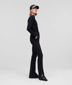 Diese elegante Punto-Hose ist mit geschlitzten Knöchelbündchen versehen, die spielerisch ausgestellt sind und den Blick auf das KARL-Logoband freigeben. Diese elegante Hose aus komfortablem Stretch-Punto kann mit der passenden Jacke mit KARL-Logoband kombiniert werden.