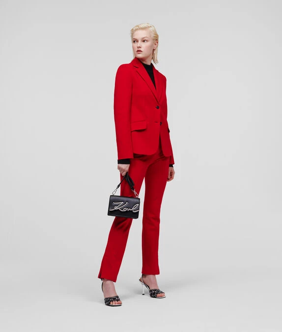 Die KARL Punto-Jacke ist ein echter Klassiker für den Kleiderschrank. Die taillierte einreihige Silhouette aus einem weichen Viskose-Mix lässt sich perfekt mit der passenden Punto-Hose kombinieren. Die Corozo-Knöpfe mit Logo am vorderen Verschluss und die KARL-Autogramm-Stickerei an der Pattentasche runden das raffinierte Modell ab.