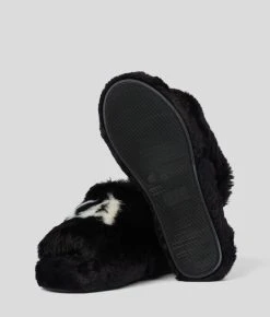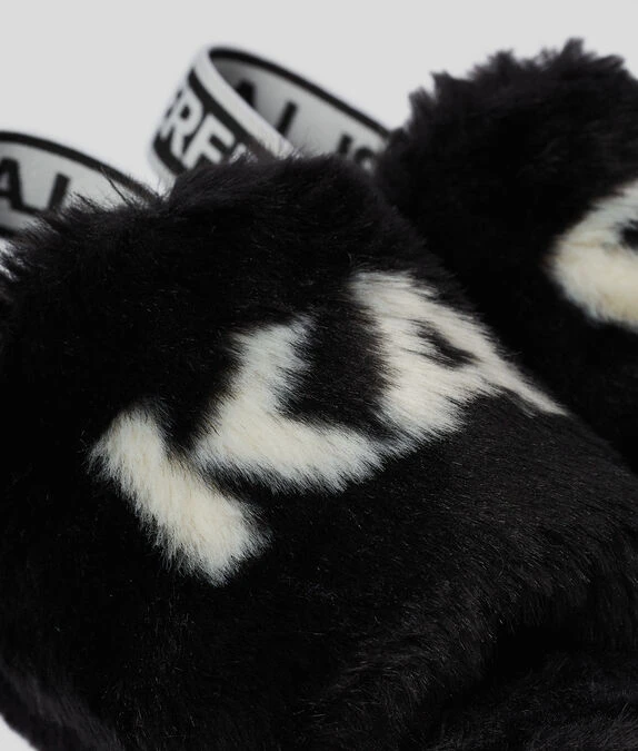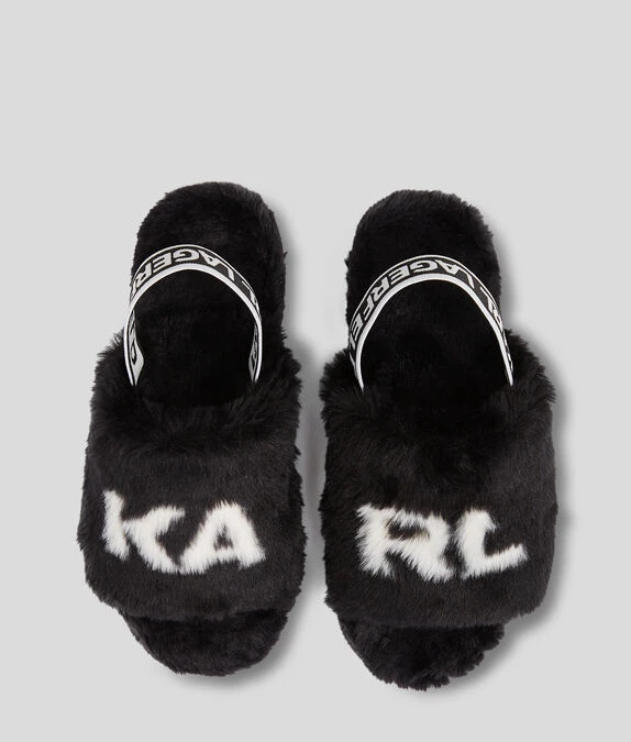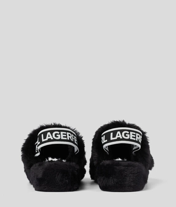 Slingback-Plateausandale mit Zehenriemen aus Kunstfell und elastischem Riemen hinten.