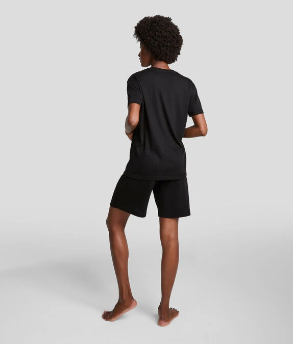 Dieses minimalistische Set mit Shorts und einem Pyjama-T-Shirt aus luftiger Bio-Baumwolle ist ein Klassiker für die gepflegte Nachtruhe. Ein kontrastierendes Logo auf der Brust bzw. am Bund krönen dieses Duo mit der unverwechselbaren KARL-DNA.