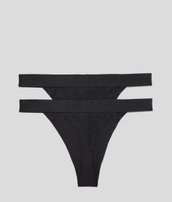 Zwei Tangas mit zarter Spitzenverzierung. Diese Dessous-Basics schmeicheln der Figur mit ihrer hohen Taille und sorgen für optisch längere Beine. Die drapierte Spitze an der Rückseite verleiht dem Design eine verspielte Note.