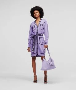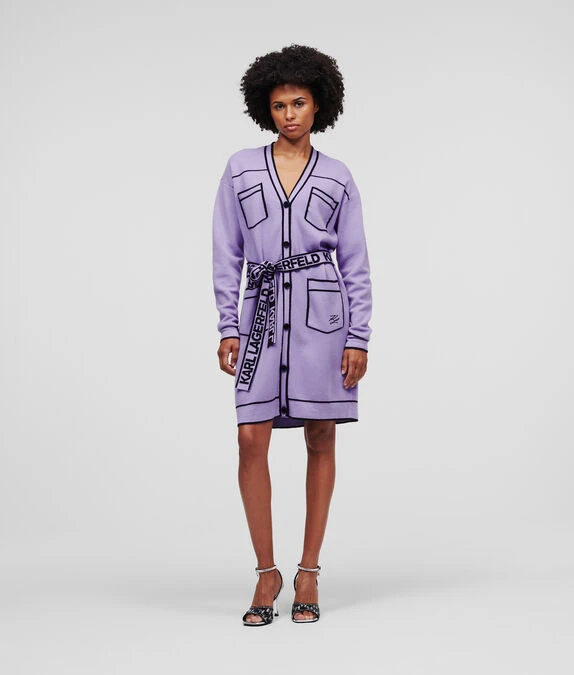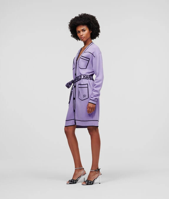 Bei dieser langen Strickjacke stellen der auffällige Gürtel mit KARL-Logo und die kontrastierende Paspelierung einen echten Blickfang dar. Das bequeme Modell aus einer weichen Wollmischung mit einem Knopfverschluss auf der Vorderseite kann als Kleid oder als Strickjacke getragen werden.