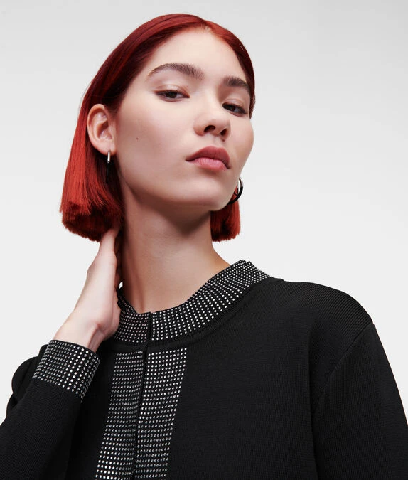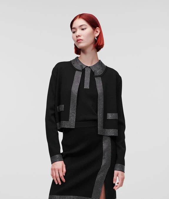 KARL LAGERFELD STRICKJACKE MIT STRASSVERZIERUNG
