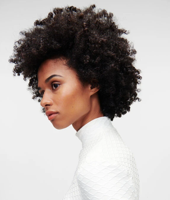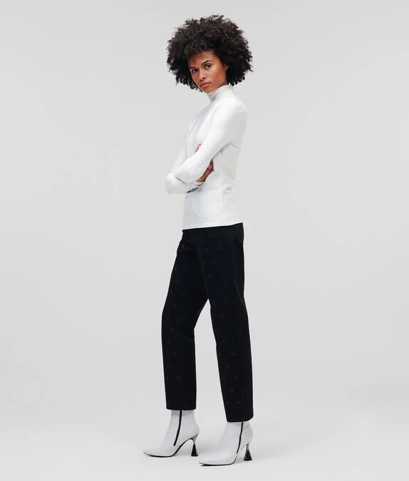 Ein strukturierter Jacquard-Pullover mit kontrastierendem KARL-Logo am Stehkragen. Das taillierte Modell mit verdecktem Reißverschluss auf der Rückseite sorgt für eine figurbetonte Silhouette.