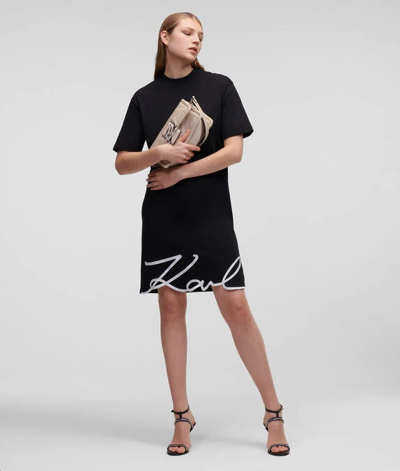 KARL LAGERFELD T-SHIRT-KLEID MIT KARL-SIGNATUR-SAUM