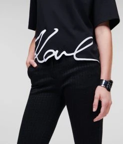 Das elegante KARL Signatur-Logo, das verspielt am Saum positioniert ist, transformiert dieses lässige Must-have. Dieses klassische T-Shirt aus Bio-Baumwolle mit Rundhalsausschnitt zeichnet sich durch einen KARL-Signatur-Saum mit Stickerei auf der Vorderseite und ein Essential KARL-Logo auf der Rückseite aus.