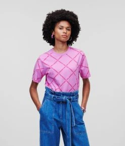 KARL LAGERFELD T-SHIRT MIT LOGO-RAUTEN-PRINT